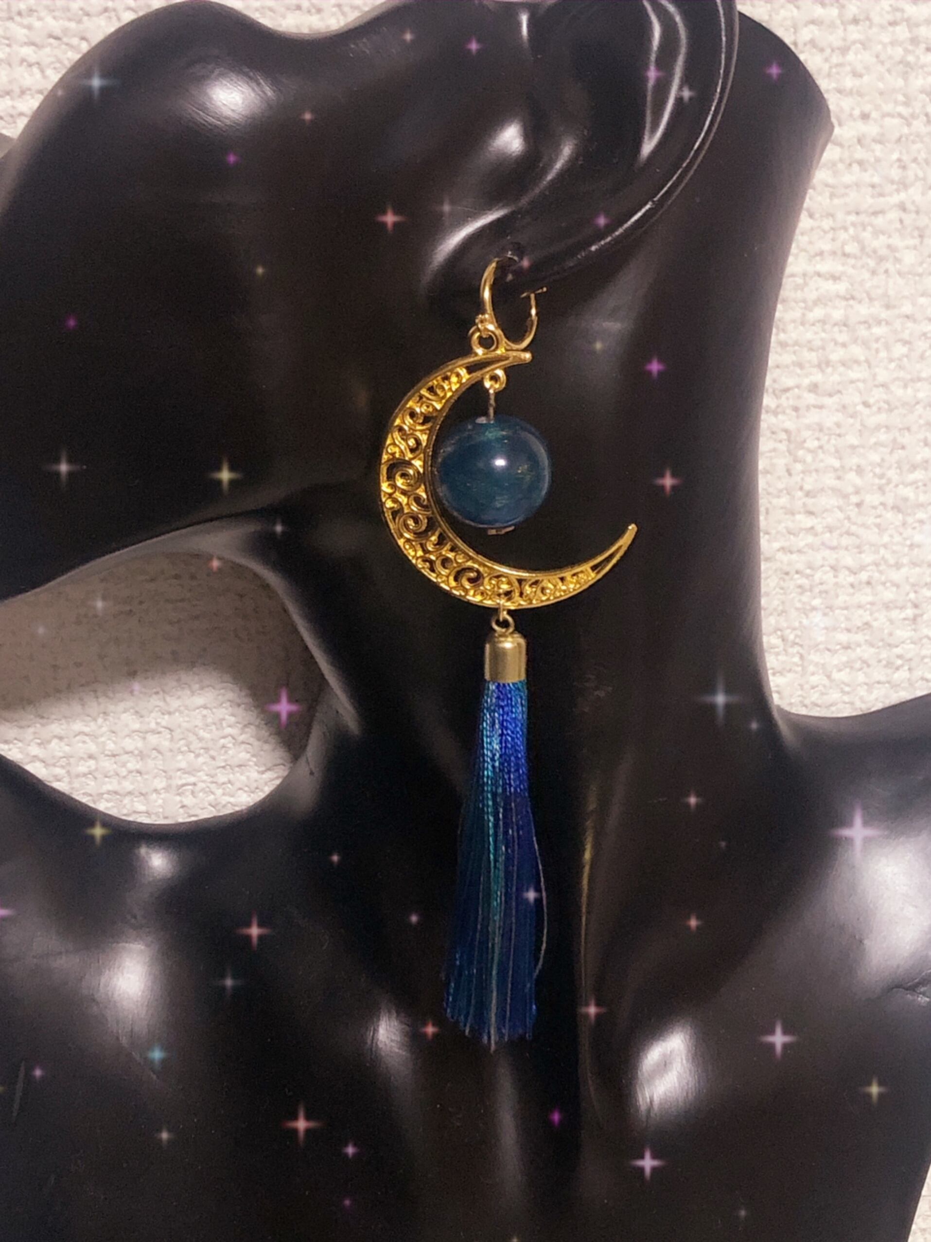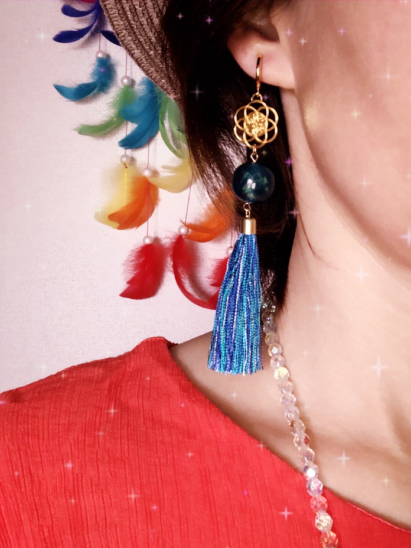 神聖幾何学イヤリングピアス シードオブライフ 三日月 タッセル